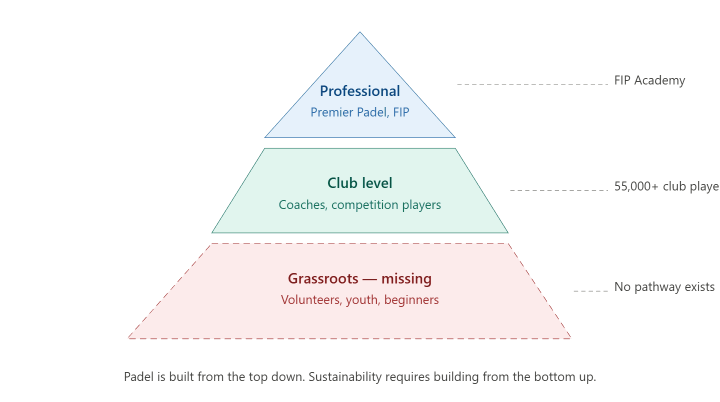 Padel is the only major European sport with zero volunteer coaching infrastructure at grassroots level.