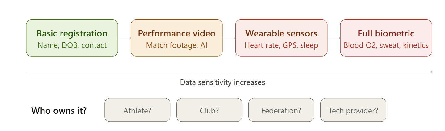 Yet grassroots clubs lack the capacity to comply. The DPC survey found that 56% of clubs collecting performance data were unaware that it likely qualifies as health data. Data ownership remains fundamentally unclear, does the data belong to the child, the parent, the club, the federation or the technology provider? A study by Kwon (2025) in Frontiers in Sports and Active Living proposed co-ownership models under GDPR and Korean PIPA, but no practical framework has been implemented.